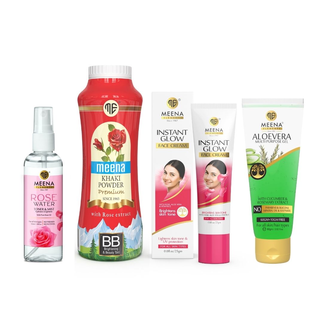 Aloe Vera Gel (60gm), Rose Water(100ml), Brightening Cream(25gm), Khaki Powder(200gm) - Combo Pack of 4