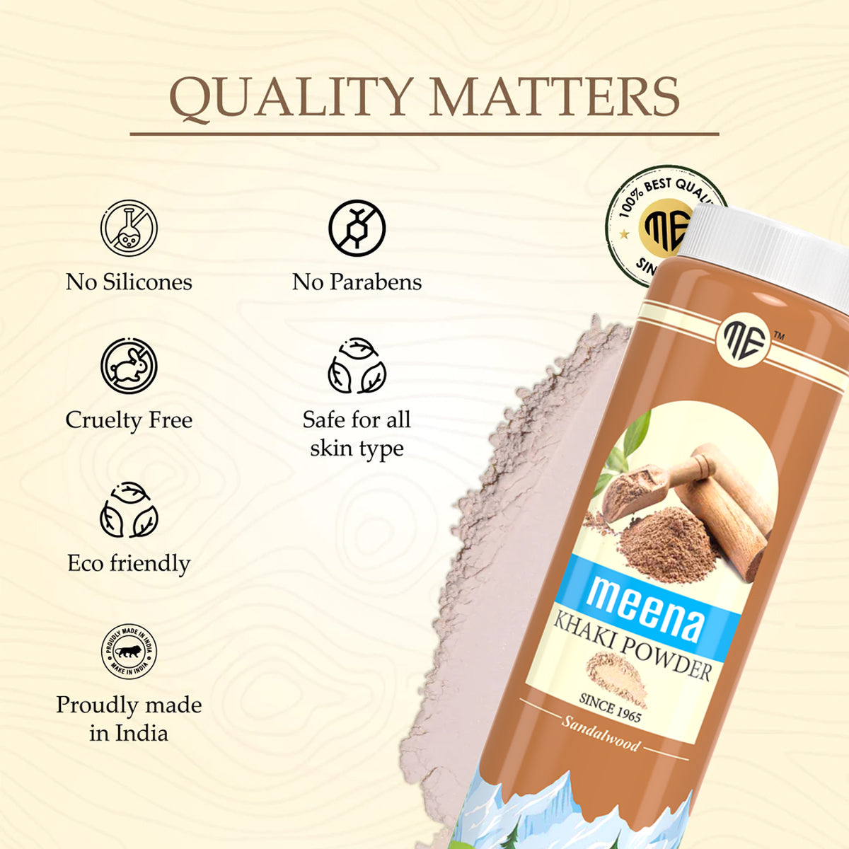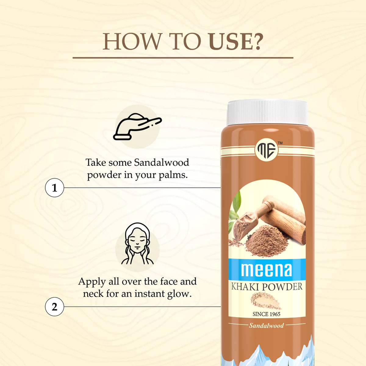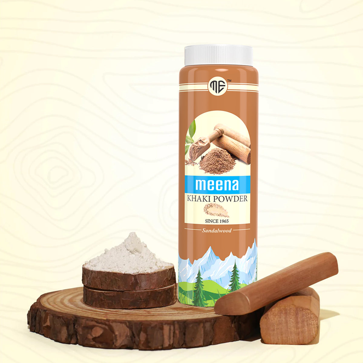 Meena Khaki Powder -Sandalwood 100gm (Brightening & Beauty Face Talc) + Rose Water 100ml FREE