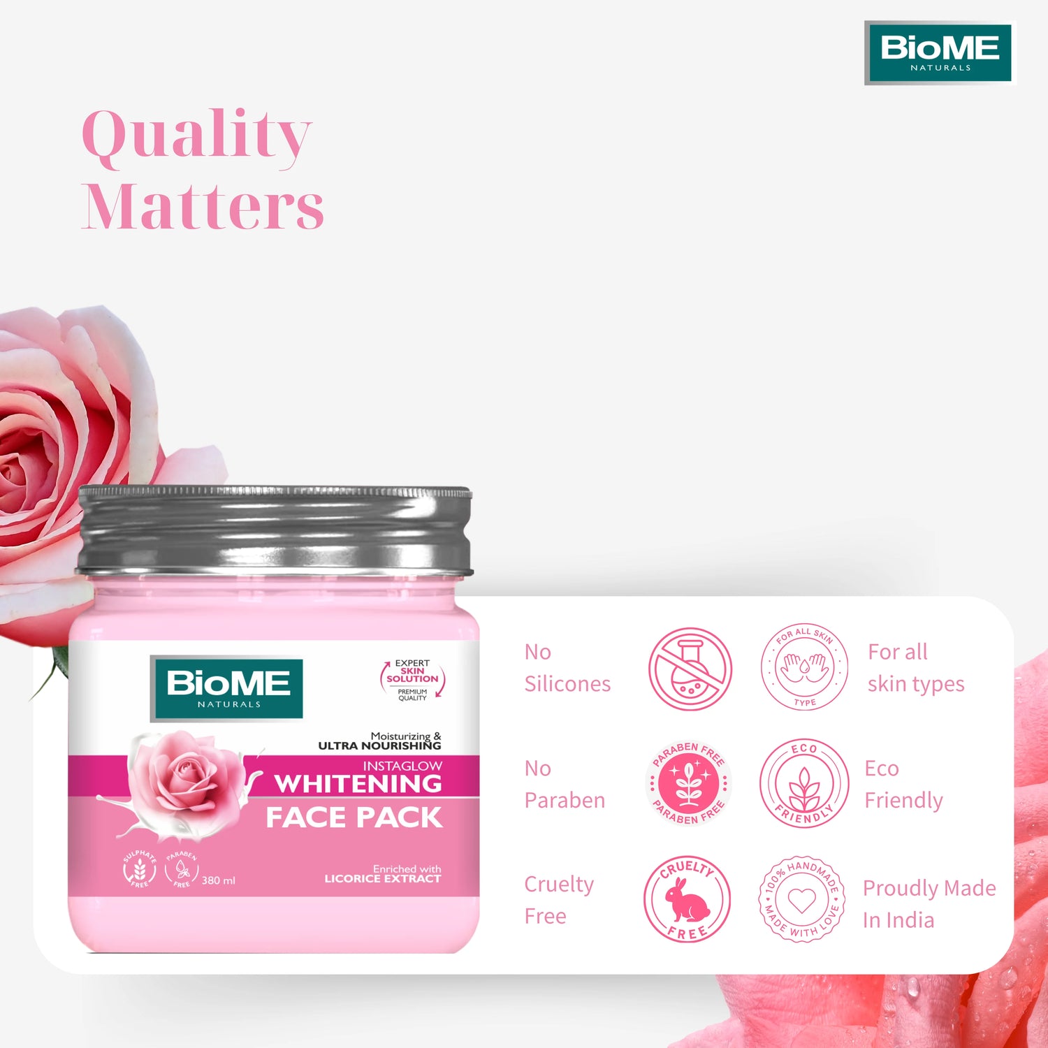 Biome Naturals Whitening Face Pack is a blend of natural ingredients that targets and reduce skin pigmentation, clear tan and balance your skin tone. This is a deep-action formula that works at the cellular level to reduce pigmentation extensively, promoting an even complexion and luminous appearance. Whitening Face Pack can lead to a noticeable transformation in your skin, restoring its youthful texture and glow.