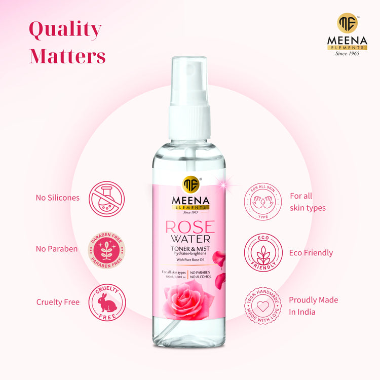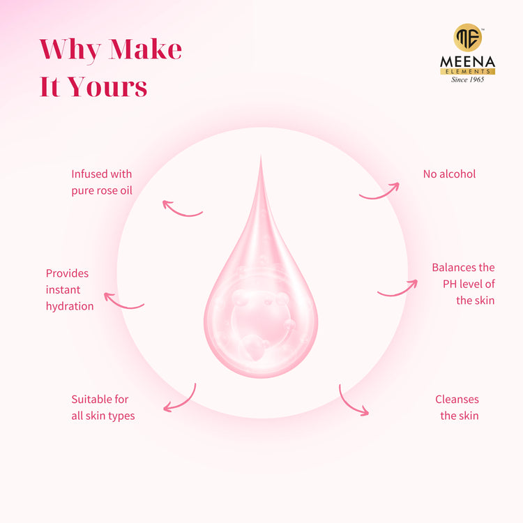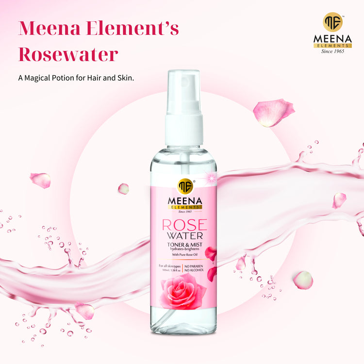 How to use :  Spray Meena Elements Rose Water Toner directly on your face and gently wipe your face with cotton ball or spray it on cotton ball and gently wipe your face with it. Mix with powder to make packs to apply on skin.