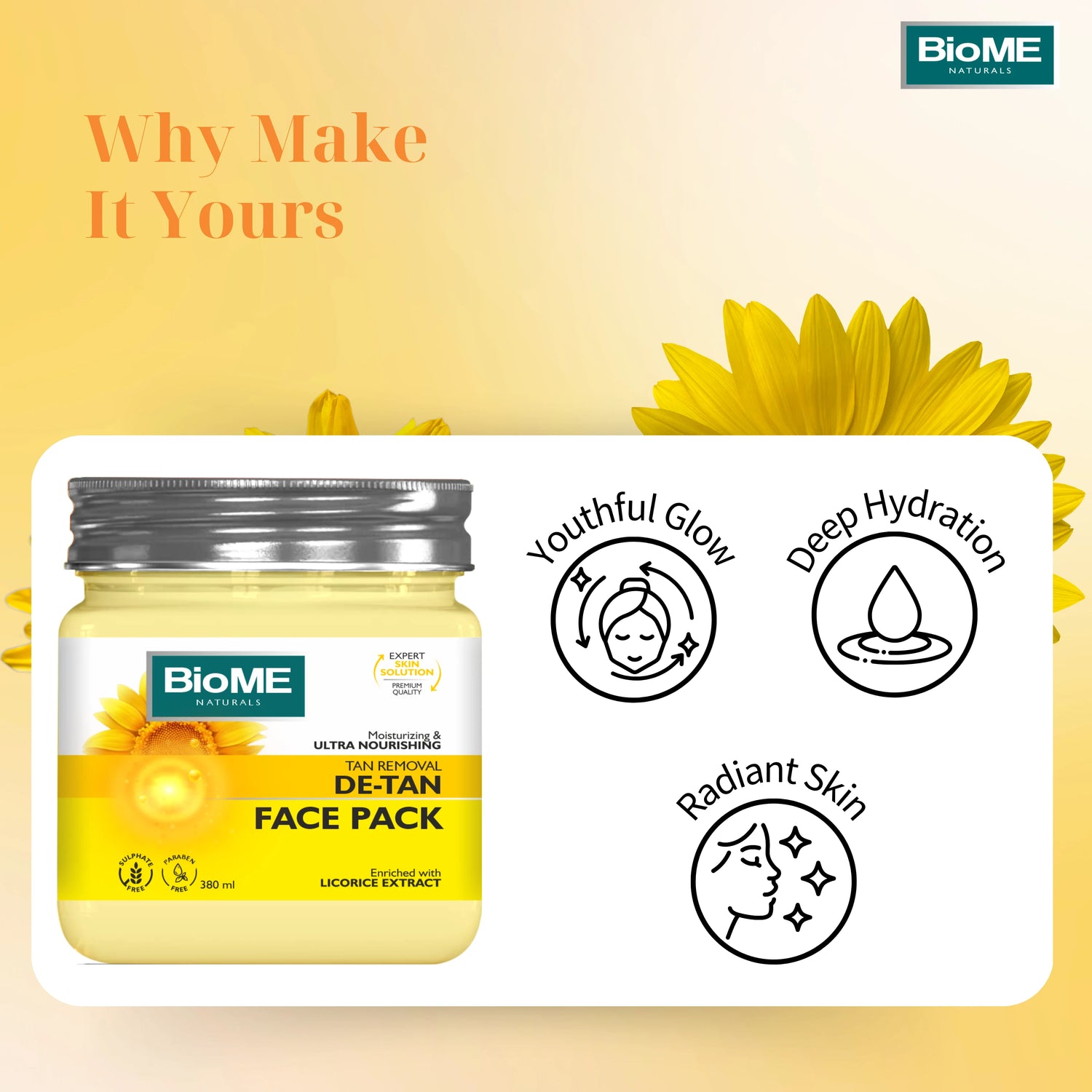 Biome Naturals De Tan Face pack works on reinvigorating the dead and damaged cells of UV affected skin. Bursting with the energizing and replenishing properties of natural extracts, the face pack casts its magic spell on the deeper layers. It deeply nourishes the skin for a soft, supple and more glowing appearance. Its skin-renewing brightening formula reduces tan and effectively works on treating uneven skin tone caused by sun damage to give your skin a brighter and radiant look.